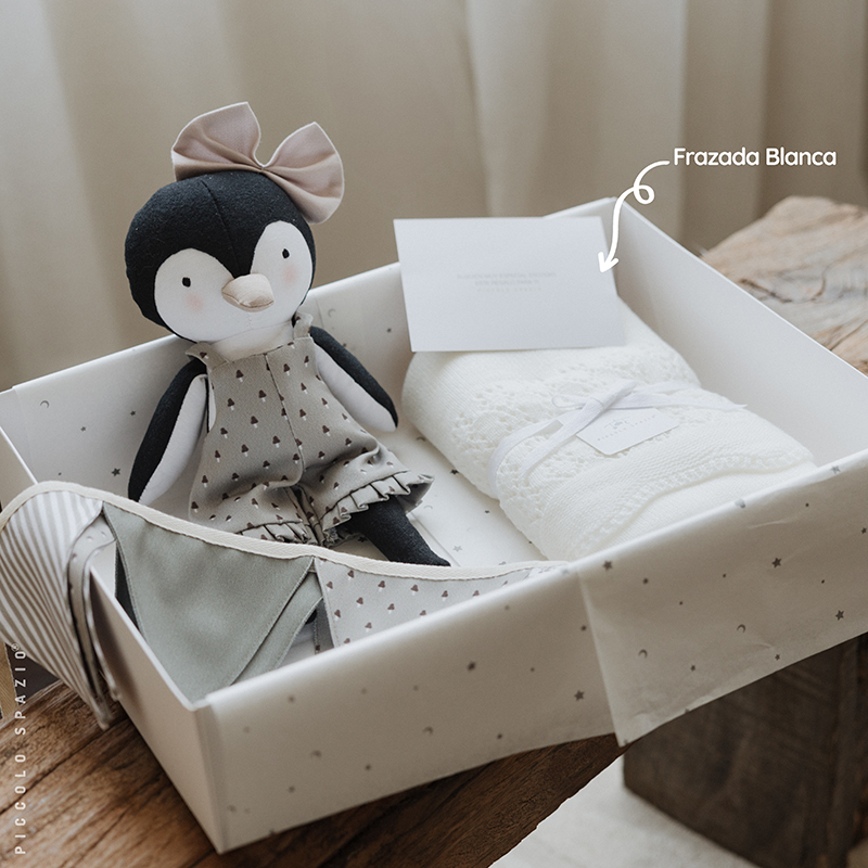 Este Baby Gift Box es el regalo ideal para dar una tierna bienvenida, así como para celebrar un bautizo o un babyshower. Este hermoso set incluye un peluche y una frazada personalizables, ambos diseñados con materiales suaves y seguros para bebés, perfectos para acompañar los primeros momentos del recién nacido. Todo se entrega en una elegante caja blanca lista para enviar como regalo, acompañada de una tarjeta de dedicatoria personalizada y una guirnalda de banderines, ideal para decorar su habitación o cuna. ¡Haz que ese momento sea memorable con un regalo dulce, completo y lleno de cariño!