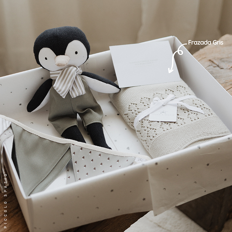 Baby Gift Box personalizable con el nombre de tu peque, escoge el color de la frazada. Este Box incluye: