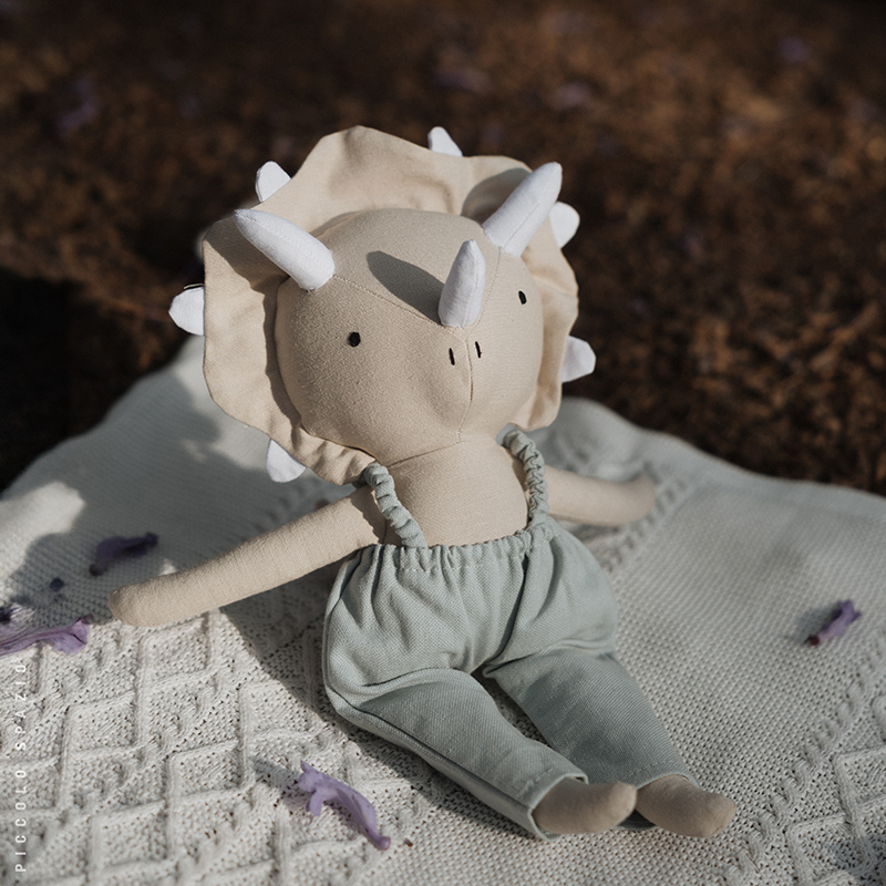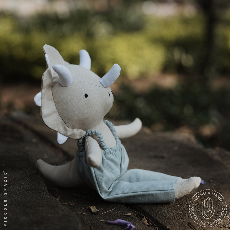 Tierno peluche inspirado en un Triceratops, personalizable con el nombre de tu peque.